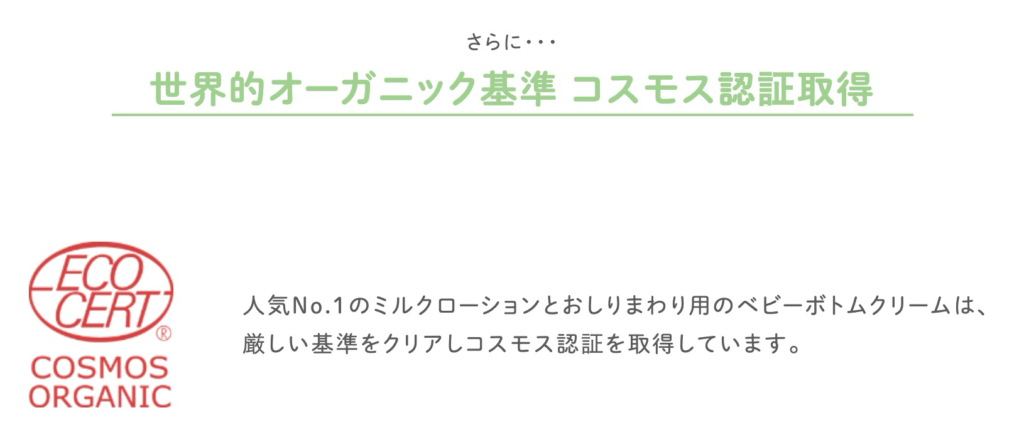 - 天然由来成分にこだわっている・国産オーガニックは、親にとって大きな安心材料。