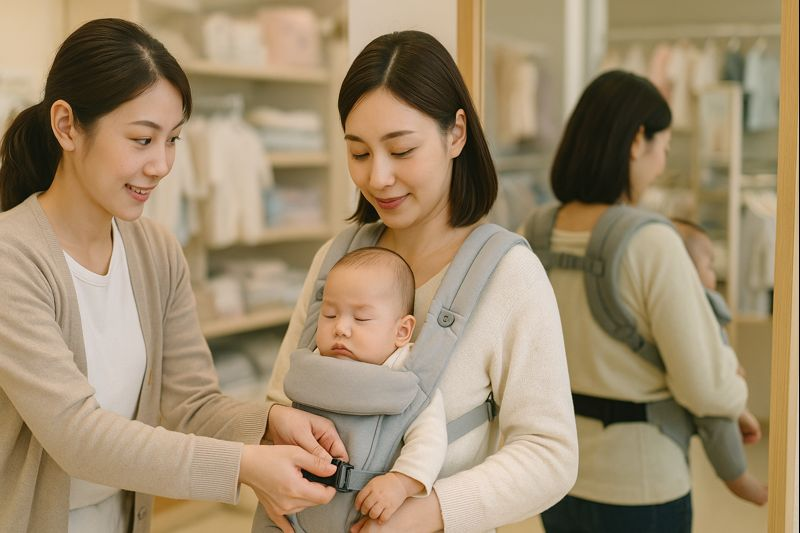 | 妊娠後期(7~9ヶ月) | 実店舗での試着(人形やパートナーと)、最終決定 | 抱っこ紐は体型が変わる前に試着するのがベスト |