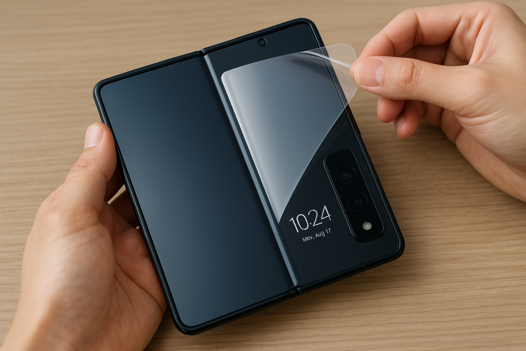 - 裸のままポケットやバッグに入れて持ち歩いたり、画面保護フィルムを貼らずに使用していると、折りたたみスマホは傷や破損のリスクが高まります。