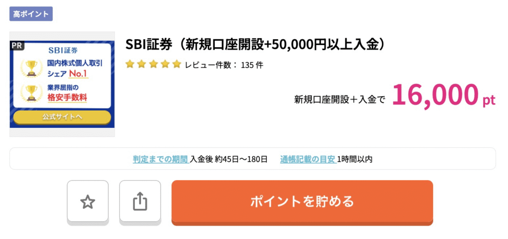まだ持っていないという方で、もしSBI証券もついでに口座開設したい!という方は、”このまま口座開設手続きをせずに一旦終了し、ハピタスを経由してから口座開設した方が圧倒的にお得” です。