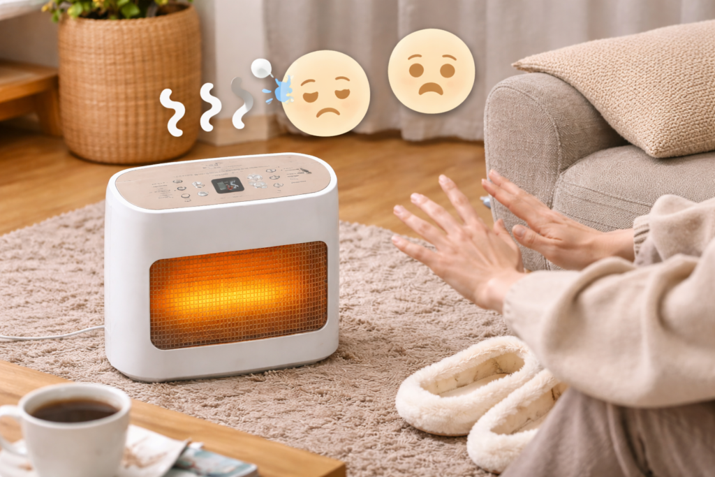 実際に「エアコンほど部屋は暑くならないが、長時間つけていても喉が痛くならず快適」と評価するユーザーもおり、暖房効果より快適性を重視する人には合っていると言えるでしょう。