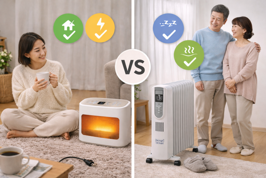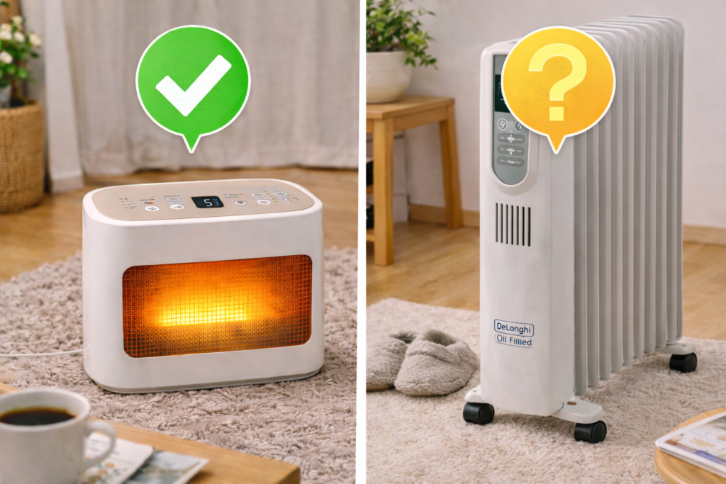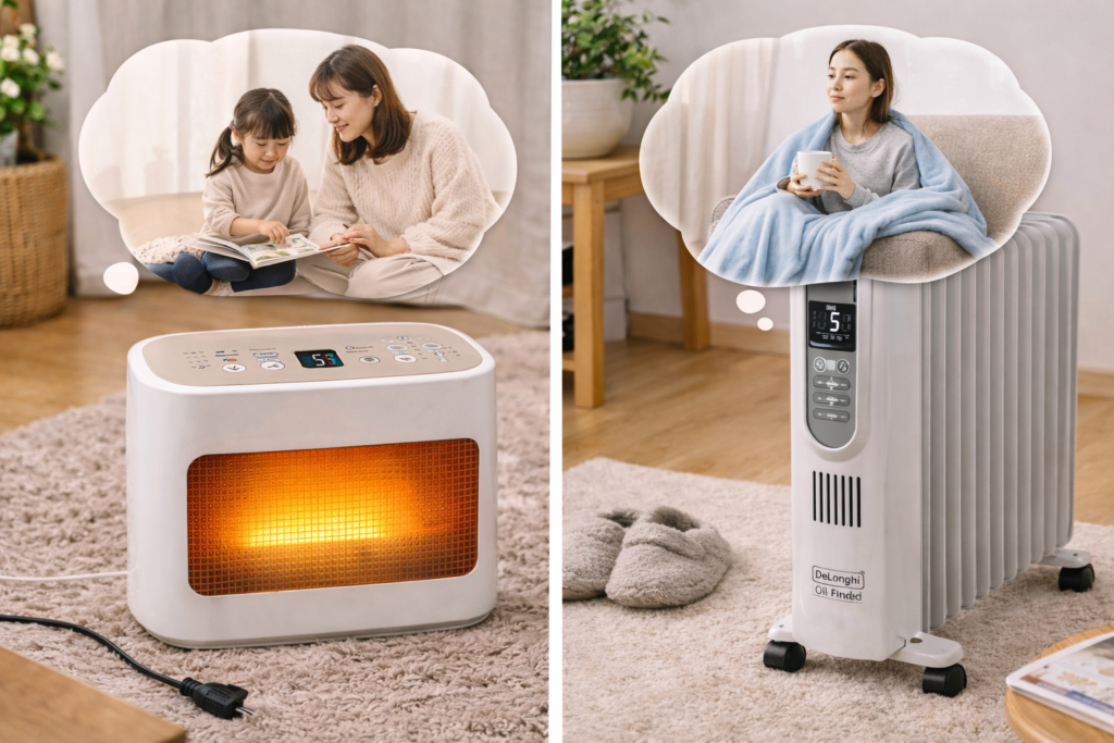 - ただし乾燥・風が苦手な人は、オイルヒーター系の快適性がメリット。