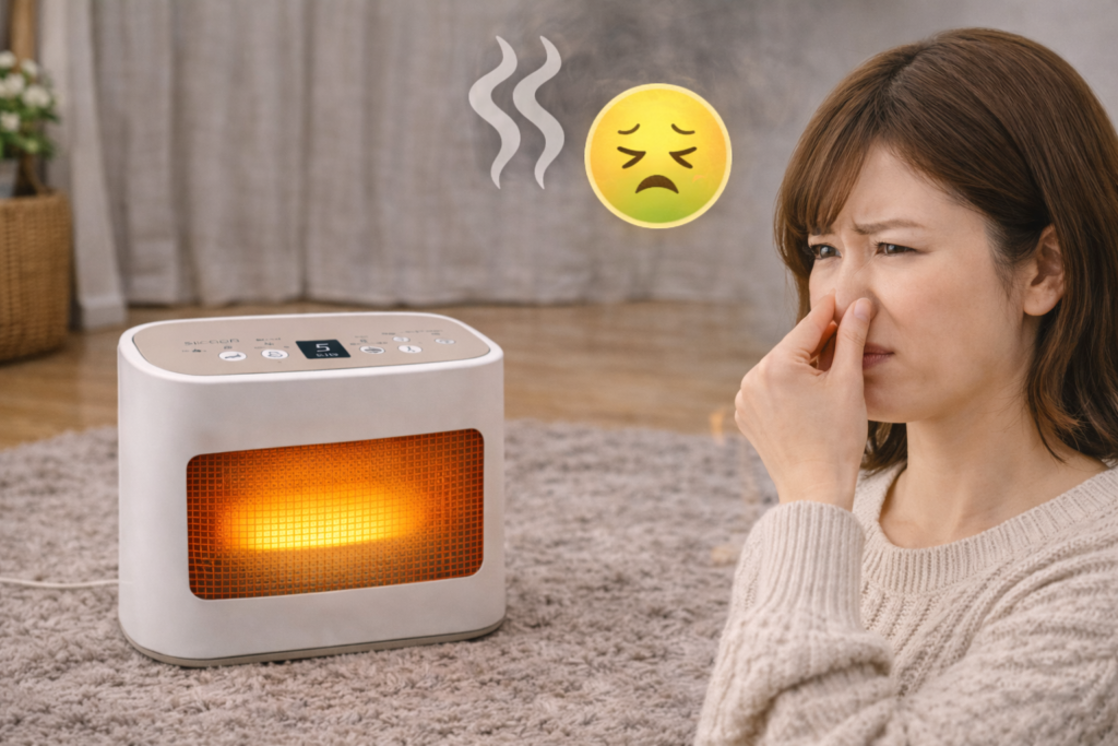 暖房器具によっては独特の臭いが気になるものがありますが、かるポカの場合、大きく分けて2種類の「臭い」が話題に上ります。