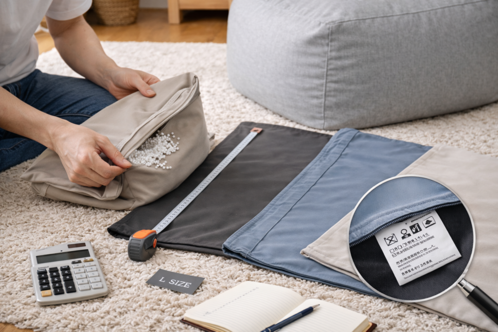 結論として、ニトリのビーズクッションカバーは代用可能性があるものの、サイズ選びは「○cm角」だけでなく、“純正カバーがどの程度小さく作られているか”を基準に逆算しないと、ゆるくて形が出ない/きつくて入らない、の両極端に振れやすくなります。