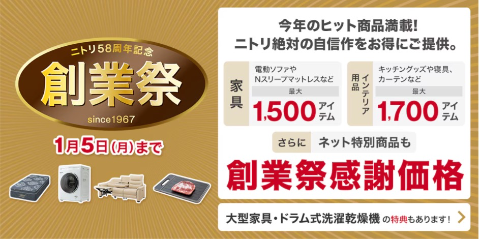 ニトリには「決まった時期の大セール」という概念があまりありませんでしたが、近年はその傾向が変わりつつあります。