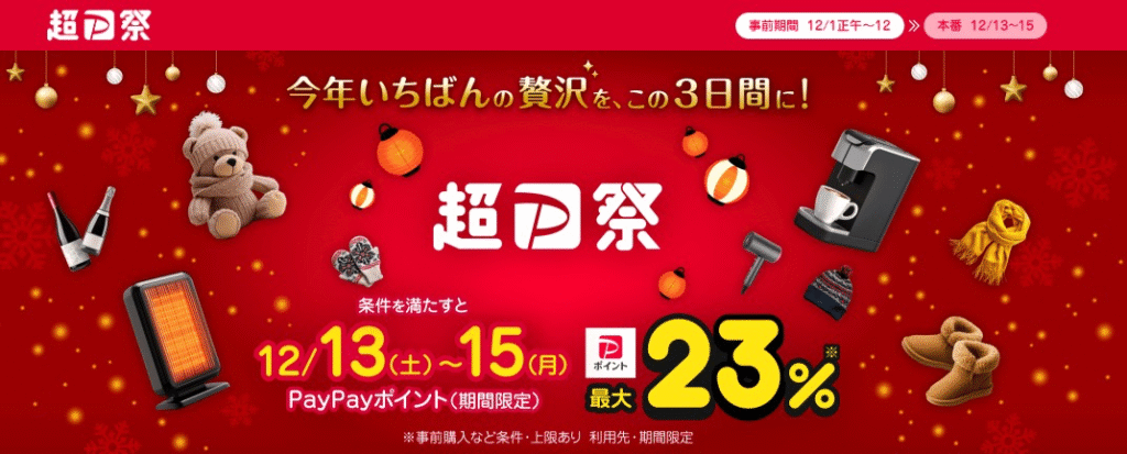 ソフトバンクユーザーやY!mobileユーザー、PayPayカード利用者は、日曜日のイベントや「5のつく日」を狙うことで、楽天同様に10%〜20%の還元を受けられる可能性があります。