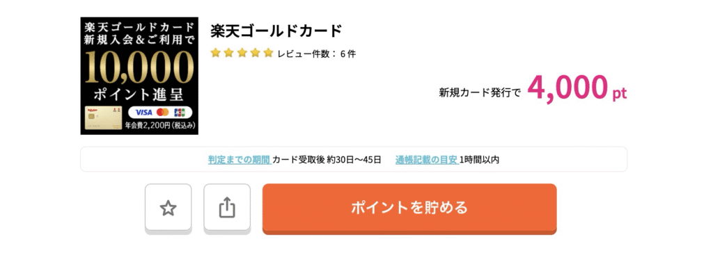 こんな感じのページに辿り着いたら「ポイントを貯める」から飛んだページより、楽天ゴールドカードの新規発行を行えばOKです。